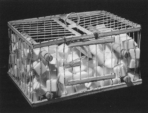 4 12 x 8 58 x 6 516. 152 marble cubes in the form of sugar cubes with thermometer and cuttlefishbone in a birdcage. 12 x 216 x 16 cm.