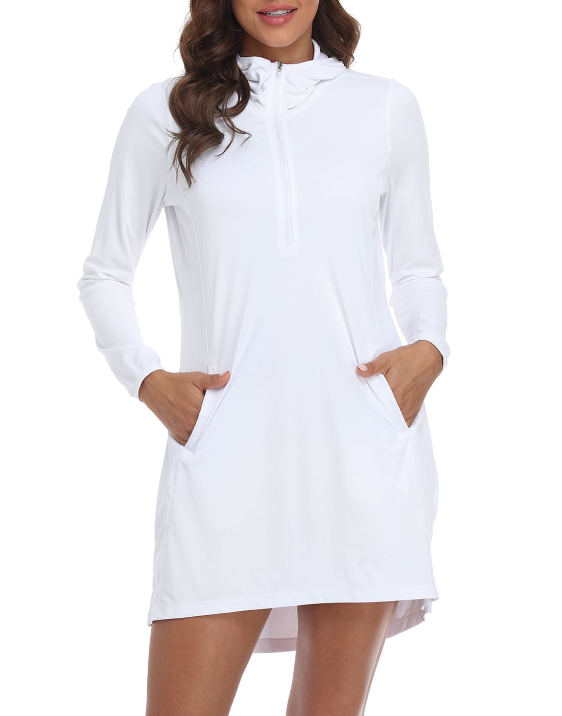 Hde Beach Coverups For Women Upf 50 Long Sleeve Swim Cover Up Dress With Hood White Xl Walmart Com
